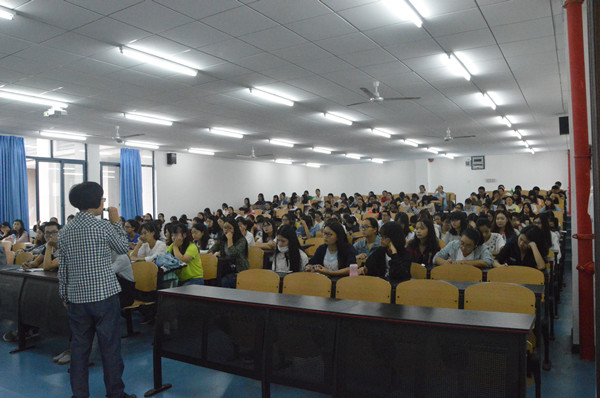 2016级辅导员刘洪老师主持讲座,2016级全体新生参与。