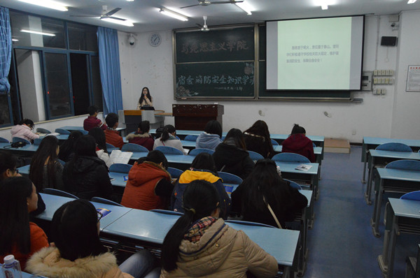本次活动由两部分组成,一是学校管理规定学习;二是典型案例教育学习。在学习相关管理规定后,2014级生活委员陈智慧结合自身经历及亲身见闻为同学们讲述了历年来各个学校发生的宿舍安全事故,警示同学们在平时的学习生活中应注意寝室安全问题,远离火源以及大功率电器等,做到防范于未然。最后,通过观看重庆永川煤矿瓦斯爆炸33人全部遇难的视频,同学们切身感受到了消防安全的重要性。