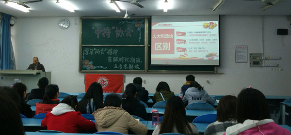 大学生紧跟“两会”步伐,深入理解“两会”内容,学习贯彻“两会”精神,“中特”协会于2017年3月16日下午3时30分在弘德楼5302教室成功举办以“学习两会精神,紧跟时代潮流”为主题的“专家解读”活动。出席本次活动的嘉宾主要有看漫画