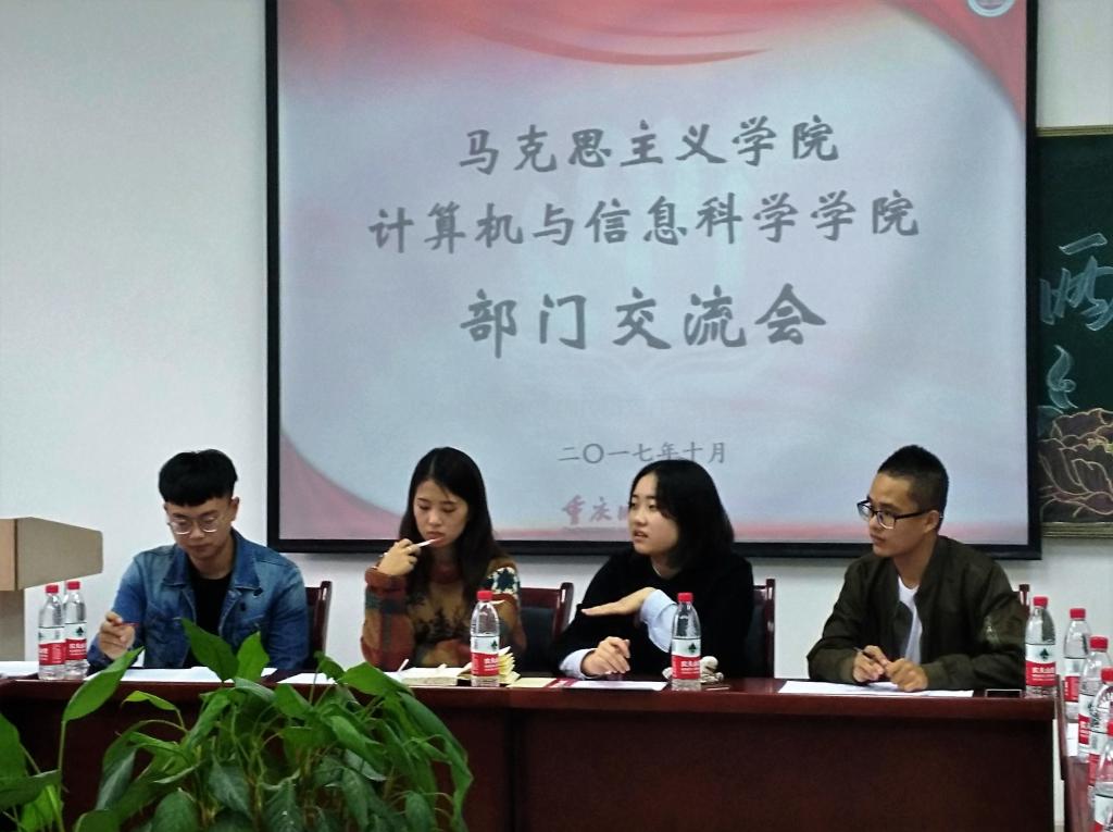 首先发言的是计算机与信息科学学院代表。计算机与信息科学学院宣传部部长刘将军介绍了学院微信运营情况、PPT制作情况及部门的一系列改革之举。紧接着,计算机与信息科学学院科研部部长熊婧宇表示对本次交流会期待已久,迫切希望与兄弟学院相互学习,然后她简要介绍了科研部的视频制作与剪辑。随后,计算机与信息科学学院特色部门PC加油站站长徐嘉茂介绍了部门工作,主要是进行电脑维护和修理,部门还在一食堂成立了一个维修电脑的小型活动处,并表示可以为全校免费服务。