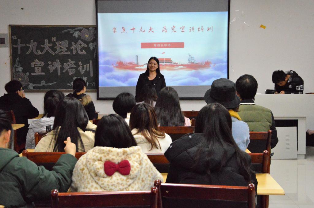 特在汇贤楼201教室开展“十九大”理论宣讲培训活动。历史与社会科学学院志愿者负责人胡倩、看漫画