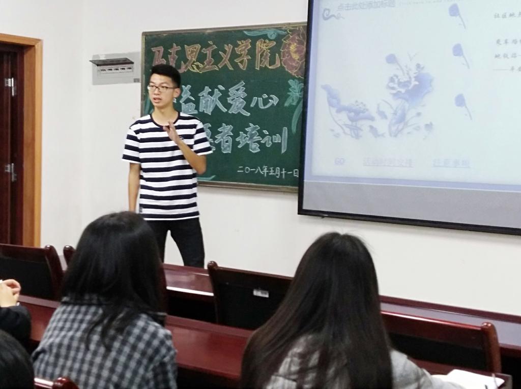 特此在汇贤楼201教室举办公益爱心活动志愿者培训大会。出席本次活动嘉宾有看漫画