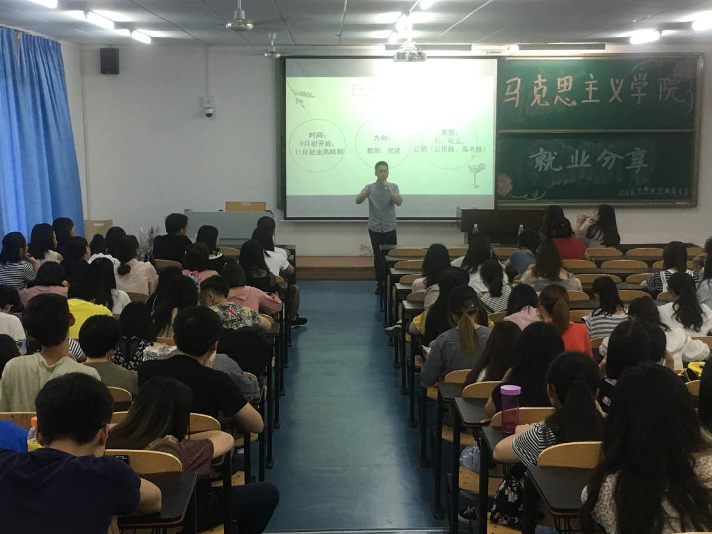 2014级学生黄磊、谢莹莹、林雪梅、杨光瑞作为分享嘉宾。2016级全体学生参与本次活动。