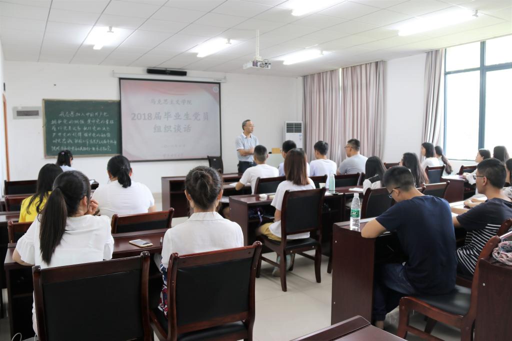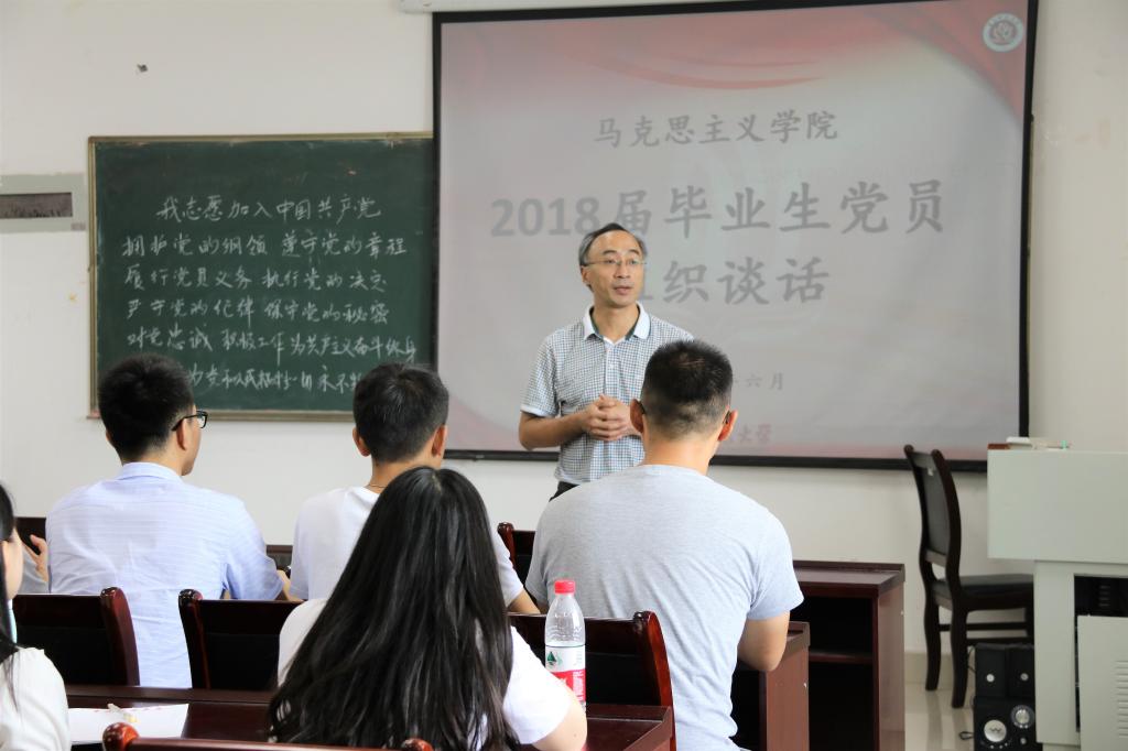随后,党委书记刘军开展组织谈话。他对毕业生党员提出了三点希望和要求:一是牢记自己的党员身份,时刻用党员标准要求自己,发挥党员应有的价值和作用;二是坚定理想信念,不忘初心,积极践行,在今后的工作岗位上勤奋努力,做事业中的佼佼者;三是坚持学习,保持先进,深刻领会习总书记系列重要讲话精神和治国理政新理念、新思想、新战略。最后,刘书记期望:毕业生党员们能够牢记使命、勇于担当,用“青春梦”托起“中国梦”,以优异的成绩为党旗增辉,为母校添彩。