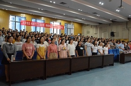 、师资力量、学生考研就业等方面做了详细阐述,并为新生们介绍了全体老师。随后,教师代表兰桂萍发表讲话,对同学们提出了四个期望:修德立身、学会阅读、坚韧立志、学会担当。希望新同学们能提升自我、充实大学生活,不负韶华。