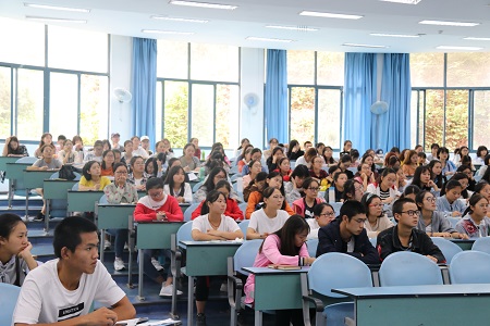 讲座伊始,张晓庆老师对学生管理相关文件进行解读,就毕业要求、学籍管理、课程管理、成绩管理和违纪处分五个方面为新生进行了详细介绍。随后张老师依次回答了关于网上选课、学分获取方式以及如何获得毕业证与学位证等广大新生热切关注的问题,从而使同学们对学校的学习生活方式有了初步了解。