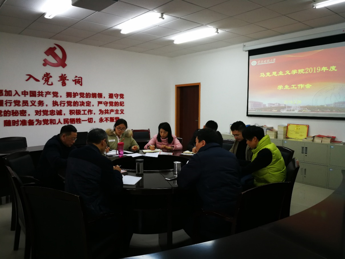 2019年度学生工作会”。学院党委书记刘军,党委副书记、院长陈洪,党委副书记姜土生,以及各年级辅导员参加了本次会议。会议由党委副书记姜土生主持。