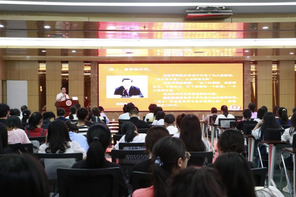 孟东方教授以启发式问题导入,通过习近平总书记十多年前视察学校时的重要讲话切入授课主题。为深学笃用习近平同志视察学校重要讲话精神精髓,用好思想政治教育重要资源,孟教授从“志存高远、珍惜时间、认真学习、文理交融、知行合一、重视就业、环境育人、身体健康”等八个方面,阐释了习近平同志对重师学子及广大青年学生的殷殷期望,鼓励同学们牢记总书记嘱托,树立崇高理想知行合一涵养学气静气勇气大气,争做担当民族复兴大任的时代新人。