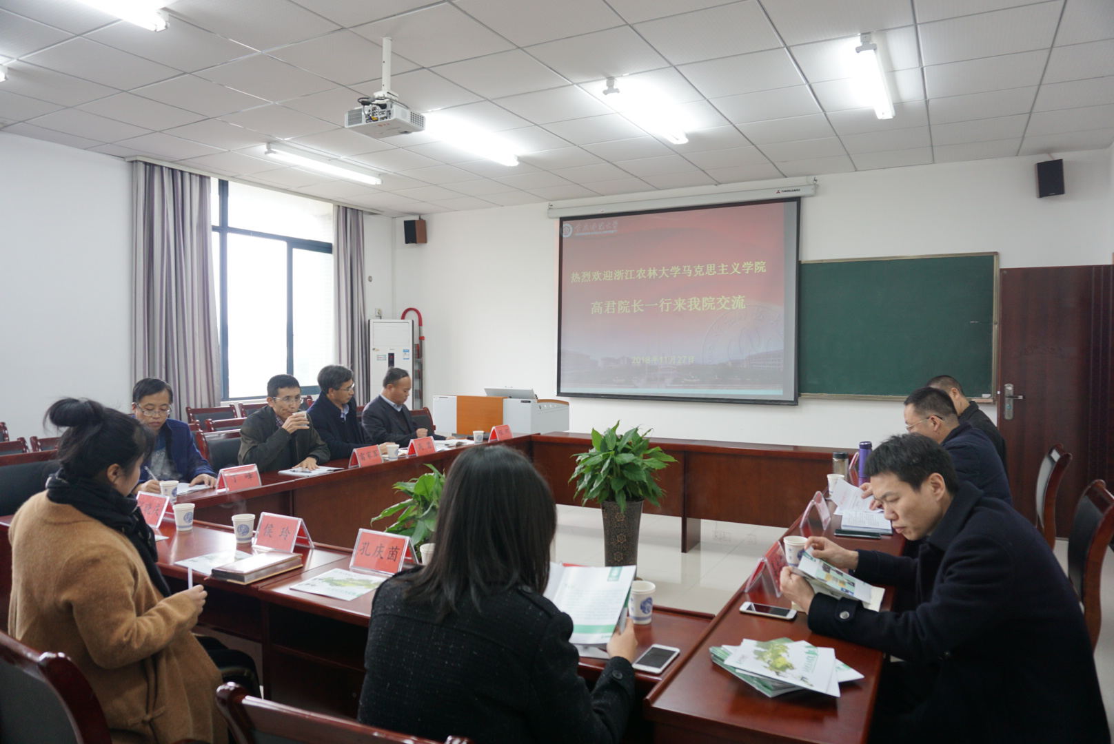 院长陈洪教授、副院长况明安副教授、党委副书记姜土生副教授、思想政治理论课教研部主任孔庆茵副教授、毛中特教研室主任邵二辉副教授、研究生思想政治理论课教研室主任侯玲副教授、教科办主任张晓庆等参加交流。
