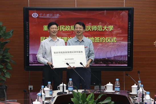 院长陈洪,重庆市民政政策理论研究基地负责人肖陆军教授以及部分基地研究人员参加了签约暨揭牌仪式。仪式由科研处副处长王放主持。