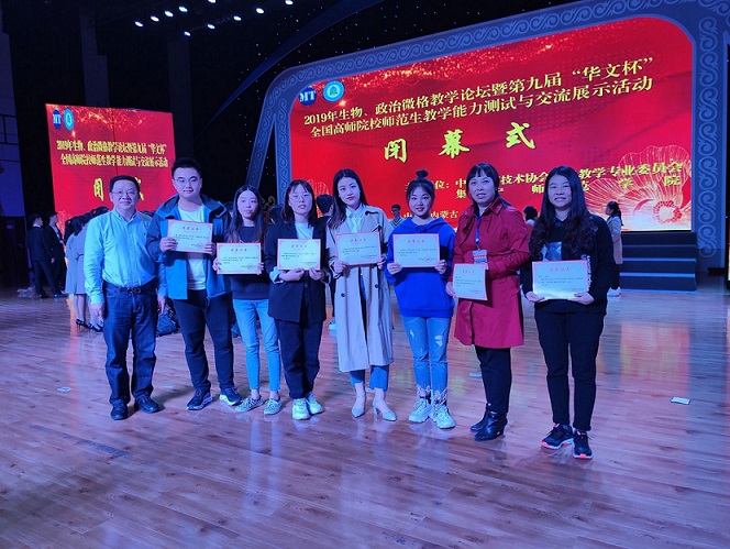 5位思想政治教育专业本科学生在院长陈洪教授,指导教师郑瑜副教授、吴涯副教授的带领下首次参加此次活动就全部获奖,其中2016级学生艾梦获教学能力测试一等奖,2017级学生任锐雪、卢昊、张凯欣获二等奖,刘凤霞获三等奖;教学设计竞赛卢昊获一等奖,艾梦、任锐雪、张凯欣获二等奖。郑瑜副教授、吴涯副教授获优秀指导教师奖。另外,我院学科教学(思政)研究生向协会提交了7篇论文参加第九届“华文杯”全国师范生政治教学活动论文评比,谭京凤获二等奖,郑瑜、武银凤、李雪莲、唐吕俊驰、陈庆获三等奖。