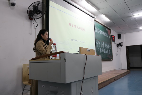 2019年11月10日19:30,学院举办中学思想政治专业能力培养系列讲座第一讲,邀请重庆市凤鸣山中学高级教师、市级骨干教师、德育主任聂晓红老师在砺志楼2410教室为2017级的同学们带来了一场题为“中学德育工作艺术与教师专业发展”的专题讲座。讲座由看漫画