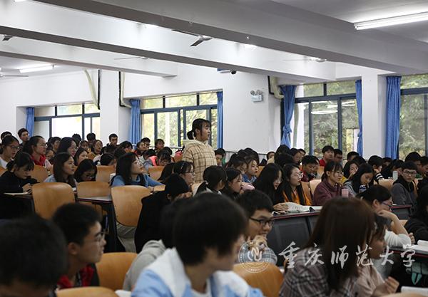 党委常委、副校长陆远权走上讲台,为化学学院300余名本科学生讲授经济专题形势与政策课。
