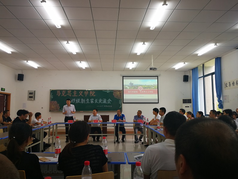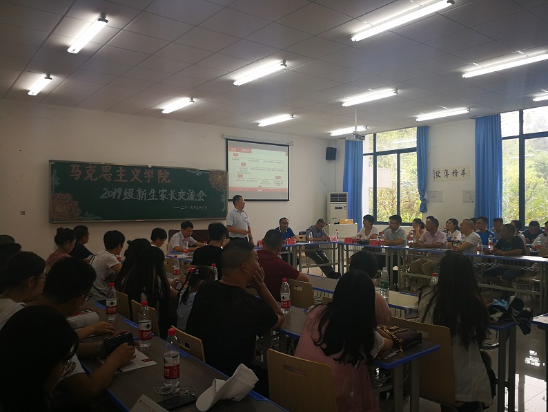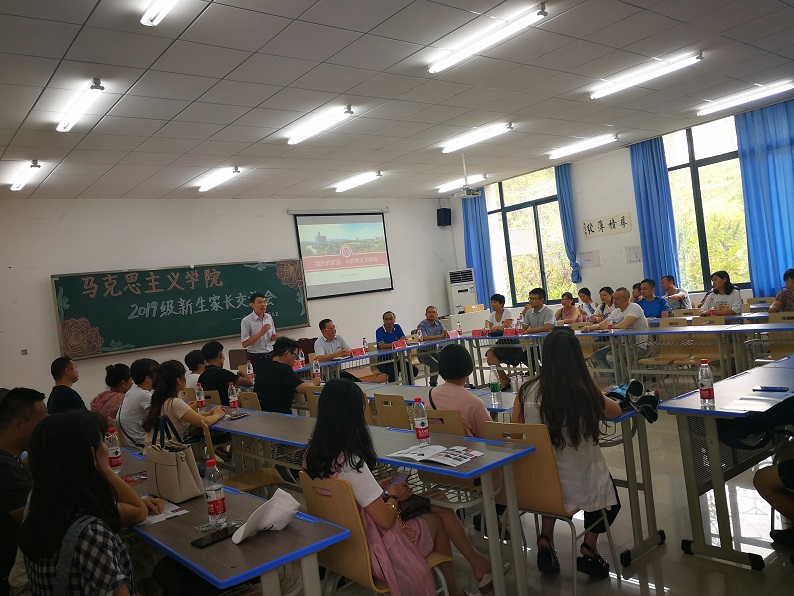 在汇贤楼106教室举办了2019级思想政治教育专业本科新生家长交流会。学院党委书记刘军、院长陈洪、副书记姜土生,政教系副主任田方林教授、党政办主任廖文梅、团总支书记和学工办主任马小又、教学科研办主任张晓庆,以及2019级新生家长70余人参加交流会。交流会由学院党委副书记姜土生主持。