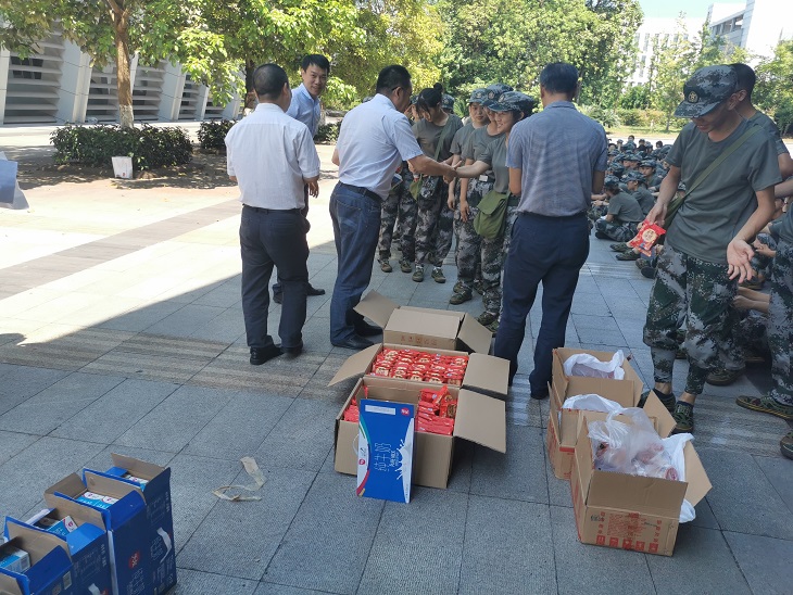 12时,此次慰问活动在学院领导为新生们一一送上了代表着学院对19级新生满满的中秋祝福与军训慰问的礼物中以及同学们的欢声笑语中圆满结束。此次学院领导的亲切慰问在给予不畏酷暑、积极训练的19级新生信心与力量的同时,也让他们感受到了来自学院的关怀与重视。希望2019级新生在接下来的训练中团结协作,继续发挥吃苦耐劳的精神,展现马院人的风采。最后,预祝2019级同学在军训汇演中凯旋。