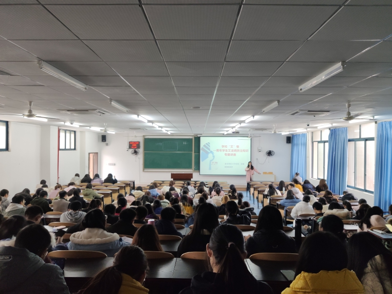特于砺志楼2402教室举行青年学生艾滋病防治知识专题讲座。特邀看漫画