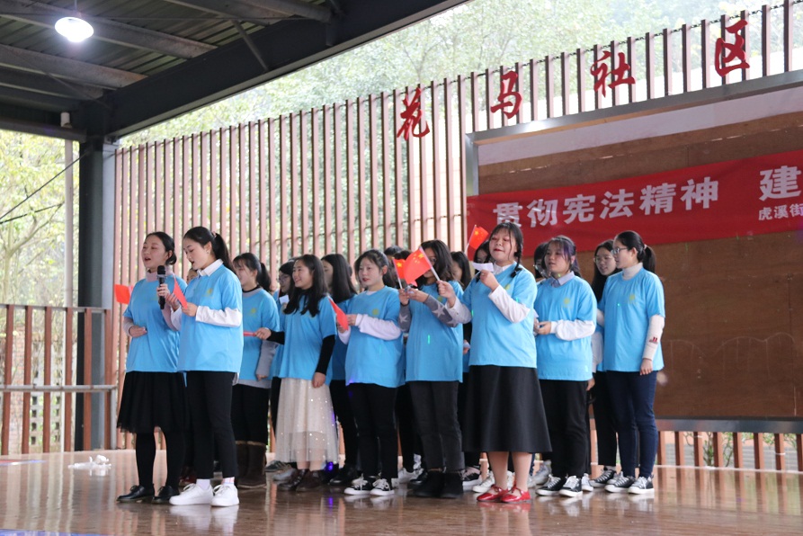 本次宣讲活动以阵地宣讲为主,流动宣讲为辅。活动伊始,《中国有我》手势舞以新颖的方式吸引社区民众注意力,为后续宣讲做好铺垫。随后,分队成员通过深情并茂的《宪法在我心中》朗诵,生动形象地向在场观众普及了宪法的基本内容及地位意义。阵地宣讲的最后改编歌曲《我和我的祖国》和《法律原则之歌》大合唱,将活动推向高潮,引起在座群众的共鸣,现场气氛活跃。