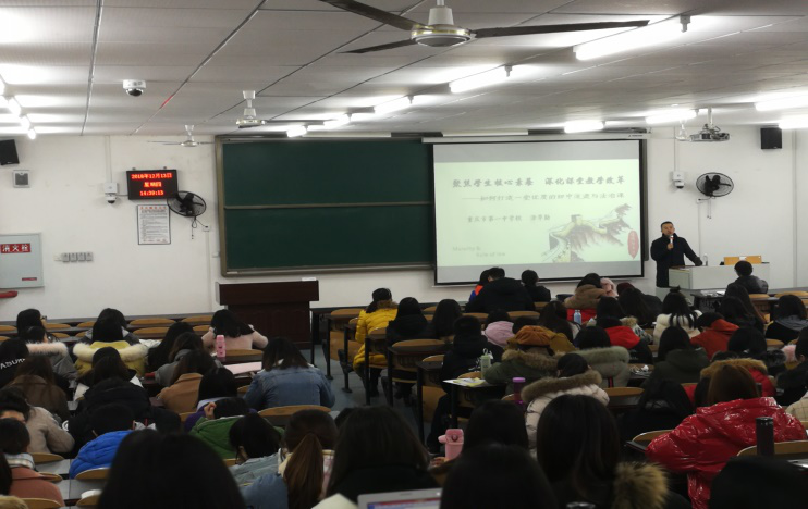 2018年12月13日下午2:30,学院邀请重庆市第一中学政治教研组长、党总支书记涂华勋老师在T2208教室为2016级的同学们带来了一场题为“聚焦学生核心素养 深化课堂教学改革”的专题讲座。