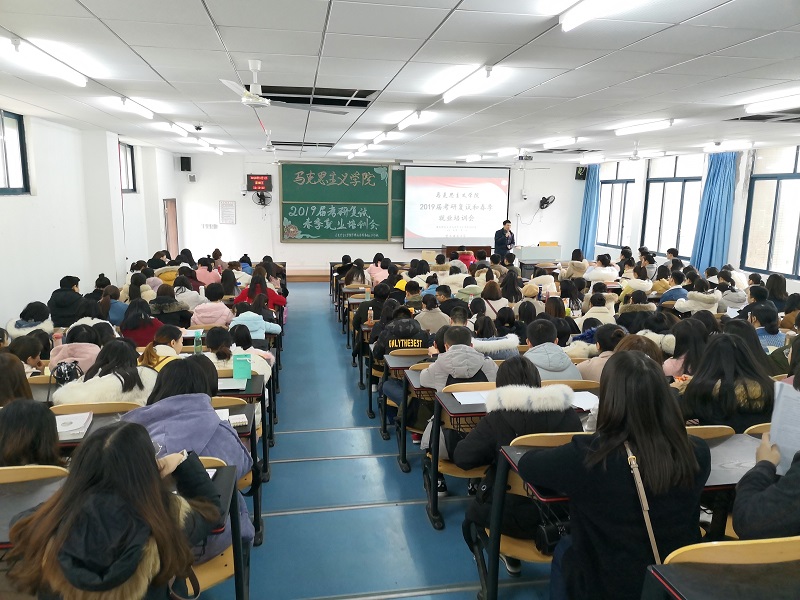 于砺志楼2402教室举办“2019届春季就业培训会”活动,活动由2019届辅导员马小又老师主持,看漫画