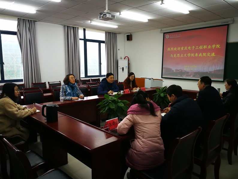 党委书记刘军、院长陈洪、党委副书记姜土生、思想政治理论课教研部主任孔庆茵、教科办主任张晓庆参加交流。