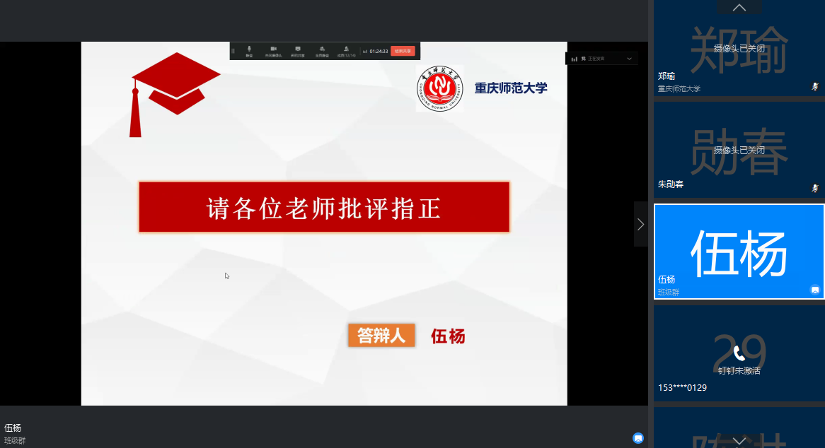 目前正值新冠肺炎疫情特殊时期,为加强对毕业研究生学位论文的指导和管理,切实提高研究生培养质量,学院认真贯彻落实教育部和学校工作要求,切实担起责任,努力做到研究生学位论文与学位授予工作质量不降、标准不变、程序规范、方式便利。根据学校的要求和学院的安排,2020年4月2日、3日下午,我院采取钉钉视频会议的形式分别开展了2020届马克思主义理论、哲学学科学术型研究生和学科(思政)专业学位研究生学位论文线上预答辩工作。