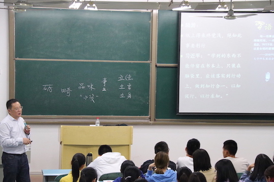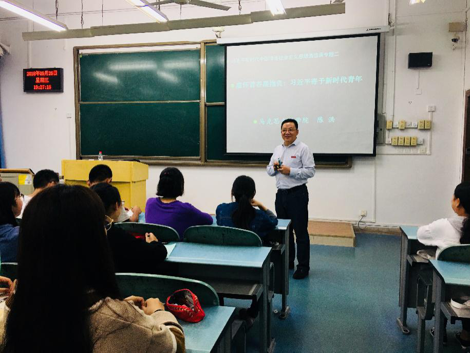 2018年9月26日晚,“习近平新时代中国特色社会主义思想”通选课在弘德楼15103教室继续进行第二讲,由看漫画