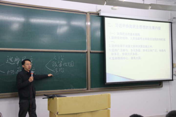 肖陆军教授主讲,主题是“画出最大同心圆:社会主义协商民主在路上”。讲座由学院祝玉峰教授主持。