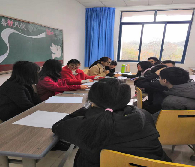 在重庆八中宏帆初级中学实习的2016级的同学们在给学生们上完思政课后积极进行学习交流。吴晓同学在交流会上分享道:“作为一名未来的思想政治理论课教师,要把社会主义核心价值观融入教育教学全过程,树立‘讲好每堂课、培育一代人’的理念,理直气壮讲好思政课,用习近平新时代中国特色社会主义思想铸魂育人,引导学生增强中国特色社会主义道路自信、理论自信、制度自信、文化自信。”刘燕同学也说:“在接下来的实习教学和今后的教育教学中,要给学生讲好、讲透党的政策、理论和方略,用最通俗易懂的语言向学生阐明中国特色社会主义制度的优越性,让“四个自信”深深地扎根在青少年心中。”