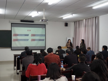 首先,院长陈洪教授为活动致辞,向到场的老师表示欢迎与感谢。随后,刘老师做了“在线开放课程建设”为主题的报告,她结合当前已建课程情况对在线开放课程认定标准进行了细化解读,以建设高阶性、创新性、挑战度的“金课”为切入角度深入阐述了以学生发展为中心、以提高教学质量为核心的全新课程建设理念,并提出实施混合式教学,教师的思想观念必须由强调“教为主”转向强调“学为主”的理念;最后,刘老师详细讲解了在线开放课程建设的流程,并从教学团队、课程内容、教学设计、教学活动等方面对在线课程建设制作提出建议。