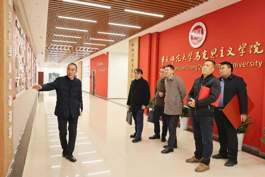 11日下午,重庆艺术工程职业学院党委书记唐加祥,党委委员、副校长徐永恒,公共课教学部副主任孙文东,宣传统战部副部长李亚卿及宣传部干事刘秋玲一行来校开展合作交流。我院党委书记李晓燕,执行院长姜土生热情邀请各位嘉宾参观了学院的文化阵地建设、学院发展简史和教学教研成果展览,用一张张图片、一段段文字勾勒出学院的历史底蕴与发展成就。