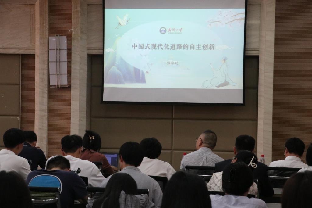 特邀中央马克思主义理论研究与建设工程首席专家、武汉大学思想政治教育研究院院长、博士生导师骆郁廷教授于三春湖会议厅为师生作题为“中国式现代化道路的自主创新”的学术讲座。本次讲座系看漫画