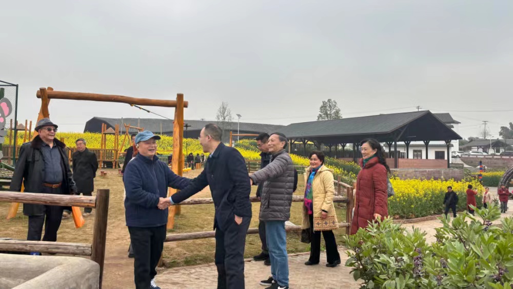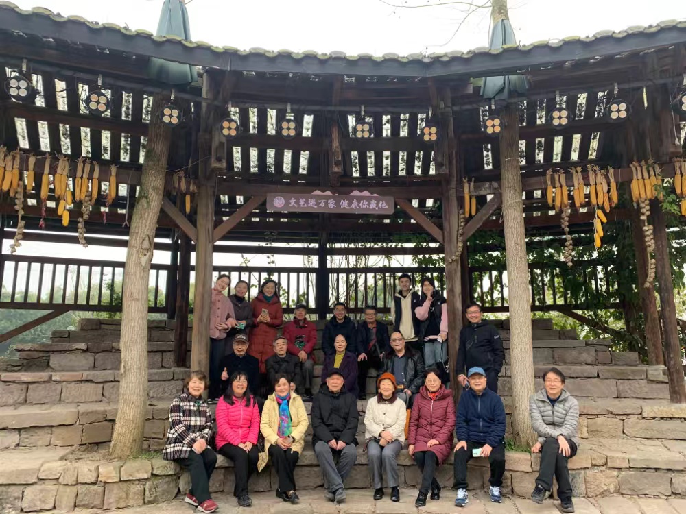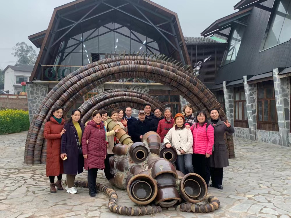 重庆市璧山区七塘镇将军村,是七塘镇政府通过联合艺术机构、村集体及社会力量,打造的融艺术设施、研学基地、农业旅游等为一体的村落艺术社区,是重庆乡村振兴十大示范村,是全国乡村旅游重点村镇。在讲解员的带领下,老同志们参观了充满艺术气息的莲花穴院落、凝聚记忆的七塘乡情馆、独具特色的茶室、餐厅以及旧民舍改造的美术馆、艺术博物馆等。大家跟着讲解员漫步在千亩油菜花海,闻清甜四溢花香,赏特色农家小院,忆教书育人点滴,时而与美景合影留念,时而感慨新农村建设成就。
