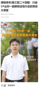 近日,新重庆客户端发表了由重庆日报思想周刊,看漫画 党委宣传部、看漫画 联合出品的理响青年第三百二十四期作品“川渝CP@你一起解锁这场行走的思政大课堂”。