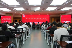 于博雅楼504创新厅举办“旗帜·榜样的力量”第四届先进事迹报告会暨2023-2024学年度优秀学生表彰大会。院党委书记李晓燕、党委副书记方敏、副院长侯玲及教师代表出席大会,2024级全体本科生及本、硕各年级学生代表到场参与学习。