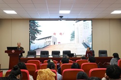 师生做题为“高中思想政治试题命制的认知与实践”的专题讲座,讲座由学院副院长田方林教授主持,学院部分教师、同学到场学习。