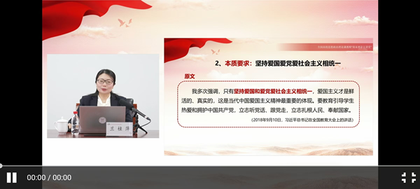 在主题授课中,兰桂萍老师就2024年第19期《求是》杂志刊发的习近平总书记重要理论文章《大力弘扬伟大爱国主义精神,把强国建设、民族复兴伟业不断推向前进》进行了解读。她首先详细介绍文章的形成背景,接着紧扣原文从习近平总书记关于弘扬爱国主义精神的价值定位、核心要义、永恒主题等层面,全面深入解读文章的主要内容,最后建议思政课教师结合《新时代爱国主义教育实施纲要》《中华人民共和国爱国主义教育法》学习文章,在现实生活中切实践行爱国主义精神,并将文章精神有机融入到思政课教学之中。