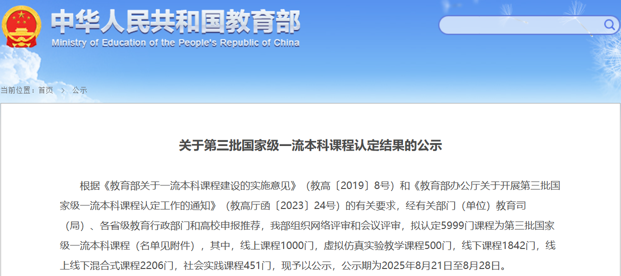 近日,教育部高等教育司发布《关于第三批国家级一流本科课程认定结果的公示》,看漫画