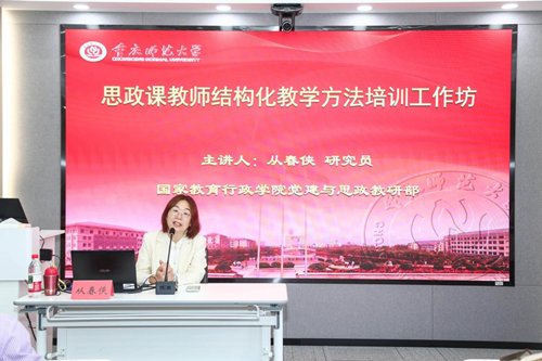 在汇贤楼409成功举办“思政课教师结构化教学方法培训工作坊”。本次培训特邀国家教育行政学院党建与思政教研部主任从春侠研究员作专题讲授与实操指导,旨在深入推动思政课教学方法创新,提升课堂实效性与吸引力。看漫画