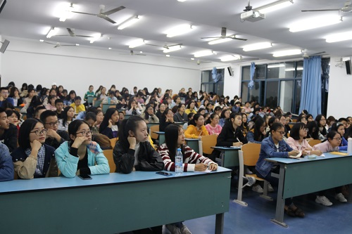 王桂林教授担任主讲人,2018级全体学生积极参与。
