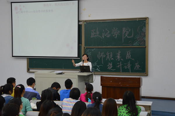 下午6点20,此次师范生素质提升讲座顺利结束。这次讲座,带给了同学们前所未有的知识体验,能让学生自觉用道德标准要求自己,不断进行自我完善,树立正确的人生观,世界观,提高其思想素质。对今后的就业求职具有重要的指导意义。