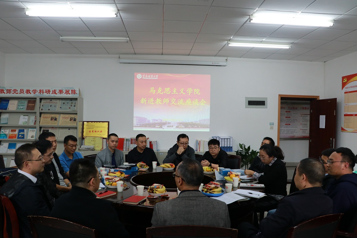 发展历程,让新进教师深度了解学院发展的成就与不易;其次,陈院长肯定了新进教师为学院做出的贡献,称大家是学院发展的新鲜血液、新力量、新气氛,希望大家能够传承马院优良作风,不断提高师生融合度;最后,陈院长畅谈了学院发展的近期和长远目标,鼓励教师们为学院改革发展积极建言献策,共同建设好马院这个精神家园。