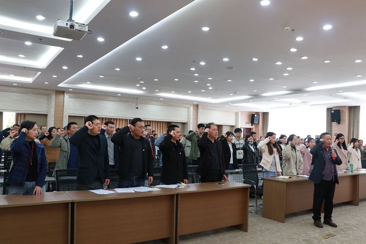 紧接着开展入党宣誓活动。学院党委委员、副院长况明安同志带领新党员进行入党宣誓,老党员重温入党誓词。
