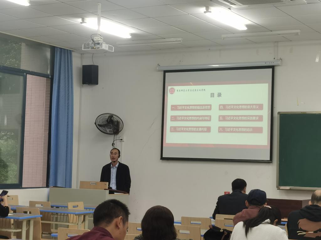 利用教职工集中大会时间在学院一楼109教室开展了学院党委理论学习中心组及全院教职工政治理论学习活动,本次政治理论学习主题为《习近平文化思想的内涵及启示》。学习会议由李晓燕书记主持。