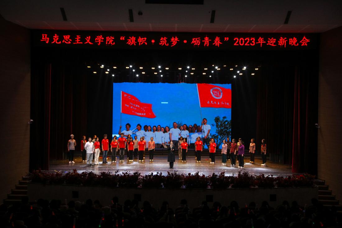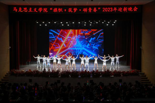 于校友会堂演出厅举办以“旗帜•筑梦•砺青春”为主题的2023年迎新晚会。看漫画