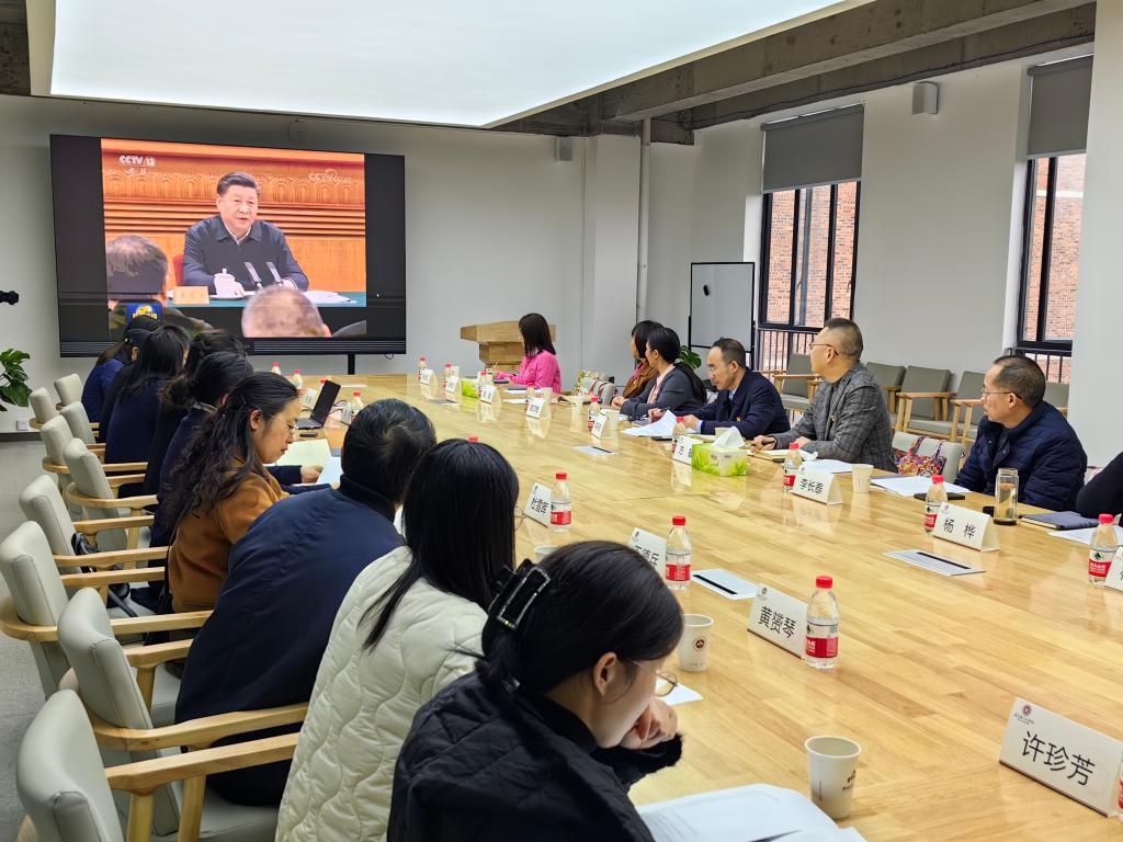 接下来,郑红芳副书记介绍《重庆日报》318讲话专题报道之《四川美术学院“思政+艺术”让艺术之美在思想中闪光》。她表示,川美马院始终以习近平新时代中国特色社会主义思想为指导,落实立德树人根本任务,不断探索“思政+艺术”思想政治教育模式,引领教师成为教书育人的“大先生”,引领学生争做德艺双馨的人民艺术家。