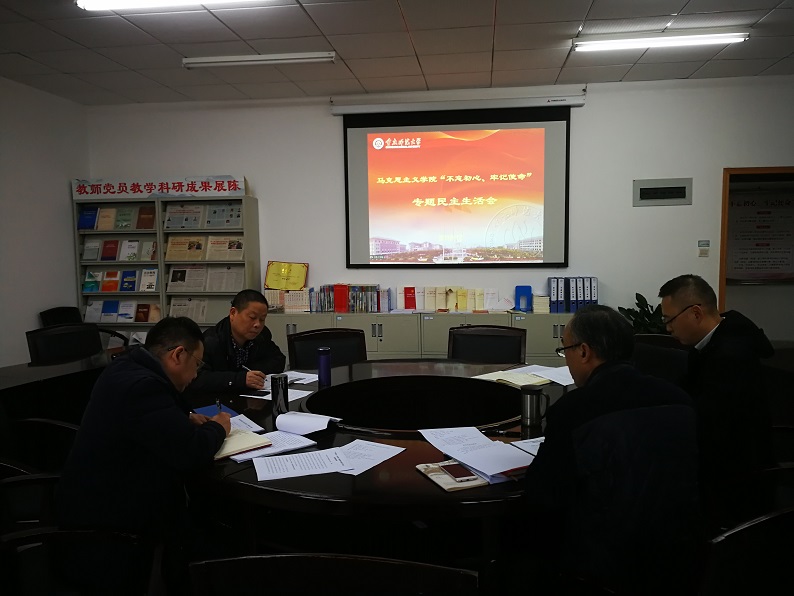 领导班子在学院301会议室召开了“不忘初心、牢记使命”专题民主生活会。会议由党委书记刘军主持,院长陈洪、副院长况明安及党委副书记方敏参加会议。