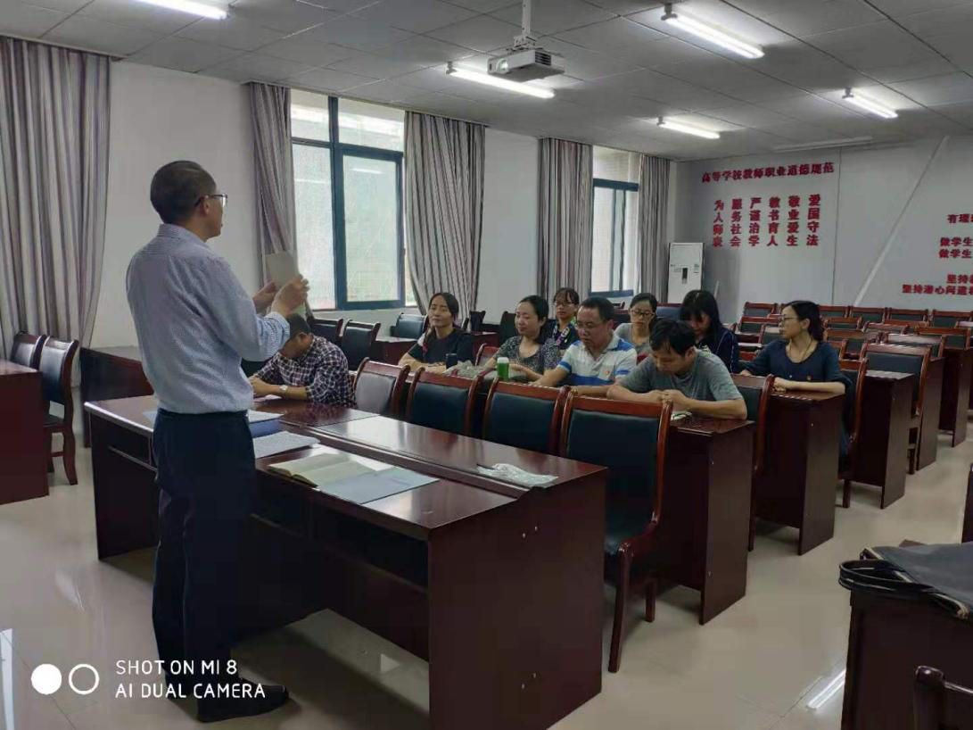 首先,支部书记李长泰老师带领大家读文件、学文件。“教育报国守初心”,教育之“初心”就在于教育服务于民族复兴,所以此次活动选取的学习文件是由人民出版社刊印的《深入学习习近平关于教育的重要论述》之《坚持把服务中华民族伟大复兴作为教育的重要使命》。文件分三部分展开:第一部分“认清历史方位,审视教育使命”,深刻论述了教育在个人、社会和国家发展中的重要意义和使命;第二方面“把握国际坐标,发展教育使命”,从整个国际社会发展的宏大视角,让我们全面把握当代世界发展需要什么样的人;第三个方面“立足中国现实,践行教育使命”则从中国实际国情出发,深刻理解新时代中国特色社会主义伟大事业怎样开展良好教育的问题。三个方面形成有机整体,共同构成了我们在新时代进一步做好人才工作培养工作的重要指导。