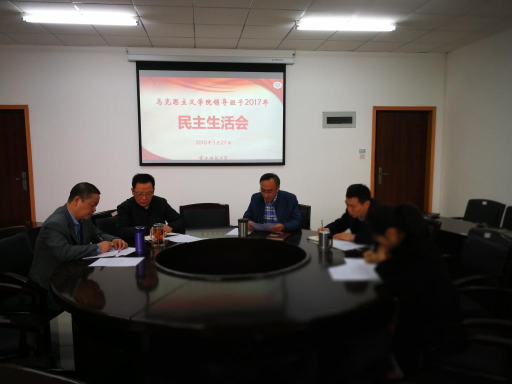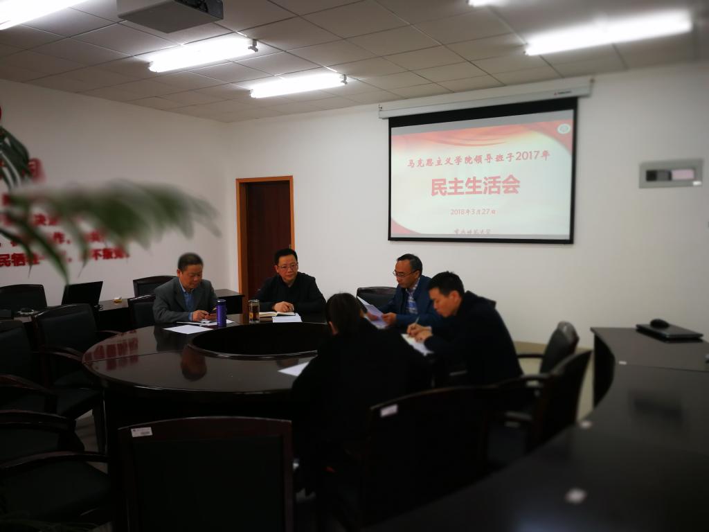 党委于2018年3月27日在301会议室召开了2017年度学院领导干部民主生活会,学院党委书记刘军、院长陈洪、副院长况明安、副书记姜土生参加。民主生活会由学院党委书记刘军主持。