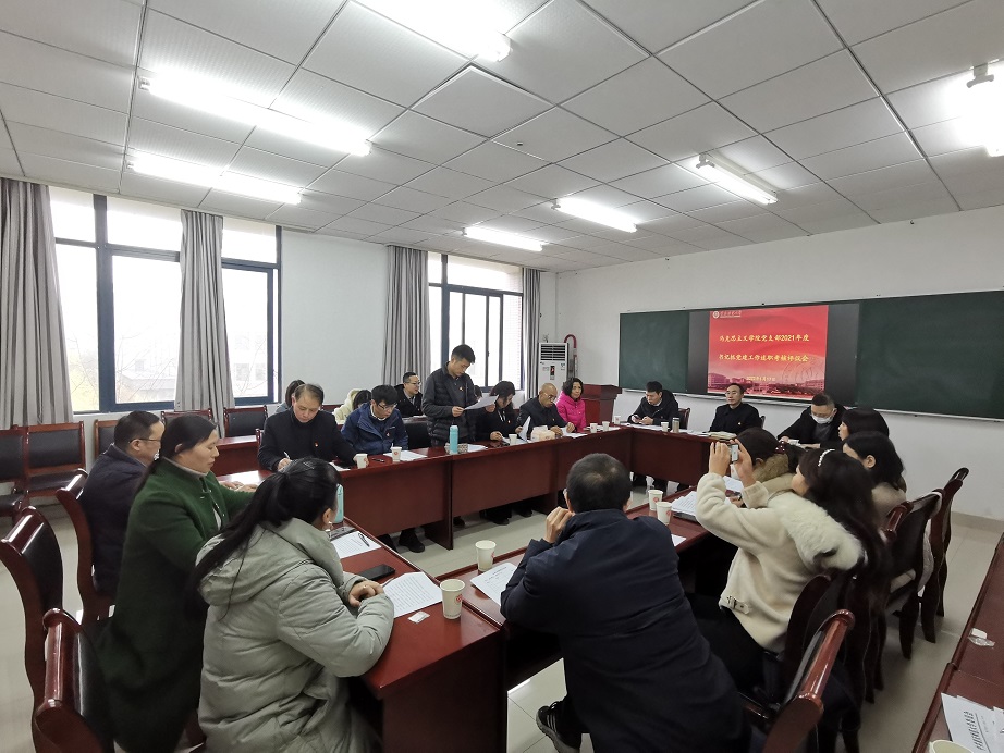 党委在学院309会议室召开2021年度党支部书记抓党建工作述职评议考核工作会。会议由学院党委书记李晓燕同志主持,学院党委委员、纪委委员,各支部书记、支委和专职组织员参加了本次会议。