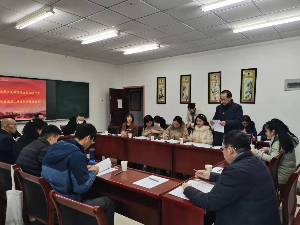 会上,马基原支部、毛中特支部、思法支部、纲要与行政支部、研究生一支部(原研究生支部)、学生一支部、学生二支部的支部书记,就2021年度支部党建工作履职情况、存在的问题及下一步努力方向三个方面逐一进行述职。随后,参会人员对各支部述职情况进行了现场考核测评。